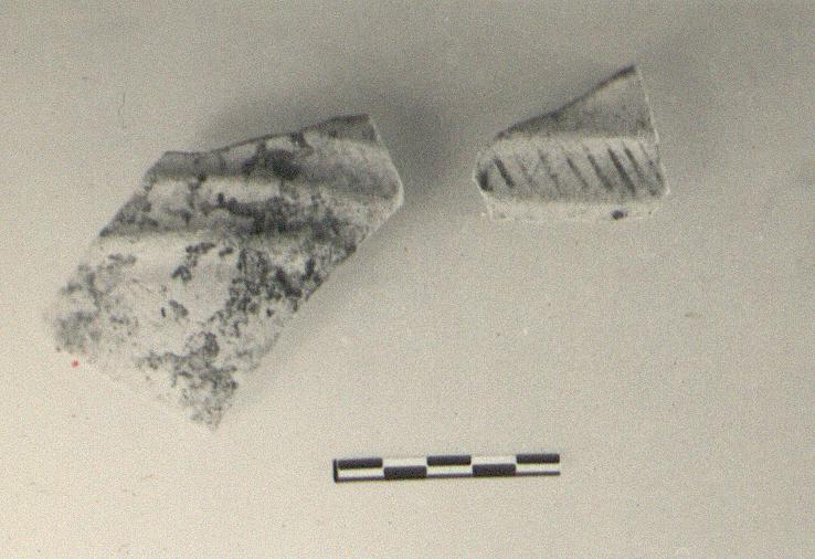 | Description: | From the wall of a closed pot. At least three horizontal ribs around body, with traces of matte painted hatchings between ribs, and a horizontal band below (or above). Fabric and clay identical with P 13969 (ΟΑ 799) but color more pale. | |