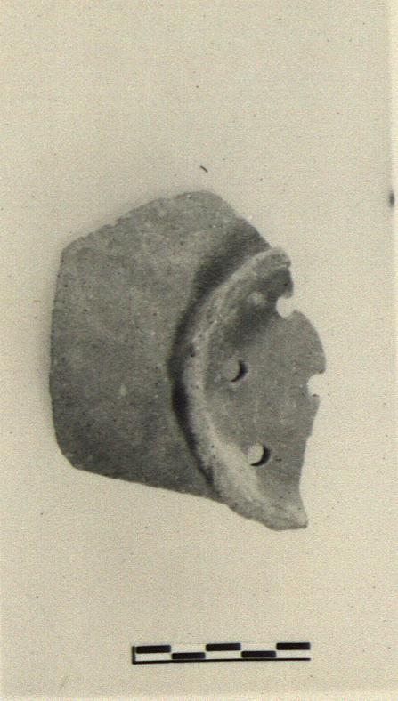 | Description: | A single fragment preserves somewhat less than half the low ring foot and some of the side wall. In the bottom, within the circle of the foot, are some very neatly made holes, ca. 0.006 in diameter. Two are completely preserved, two partially. These were probably originally seven, a center one and a circle of six around it. The fabric is exactly that of the "handmade" water jars (cf. P 14074, Ψ 753). Cf. Agora XII, no. 1648. | |