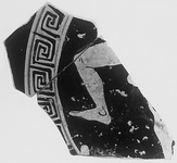 | Description: | Part of floor preserved. Inside: a border of maeander and a running figure, left, right leg with sharply bent knee and edge of left leg preserved. Outside: palmettes and scrolls. Relief contour for toes and lower line of thigh. Buff clay. Fair black glaze. | |