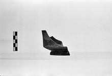 | Description: | About half of foot and floor, with part of wall and rim preserved; profile complete. High ring foot, very shallow floor; high vertical rim, very slightly concave. Dull black glaze, much peeled. | |