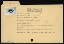 | Description: | Full profile preserved. About half the wall restored in plaster. Heavy base ring; angular side; outcurved lip. Reddish-buff clay. Metallic black glaze, over all. | |