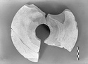 Dimensions:   Diam. (ring) ca. 0.10; Est. Diam. (lip) 0.24; Max. Dim. b) ca. 0.11; P.H. a) 0.18; Span c) 0.225, d) 0.165; Th. (top) 0.01