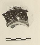 Description:   Small fragment, preserving profile to edge of floor. Ring foot; elaborate profile; narrow upturned rim with a single groove around its top surface. On the broad inner rim, a scratched zigzag, apparently done before firing, but after the glaze had hardened. Small impressed dots near outer edge of floor.