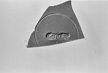 | Description: | Fragment from the center of the floor of a bowl. Groove around floor. At the middle, plantaform stamp: <graphic> | |
