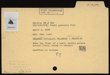 | Description: | From the floor of a bowl; double groove around floor; stamp in center: <graphic> Graffito on bottom: <graphic> Western Sigillata. | |