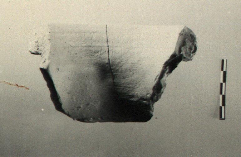 | Description: | Part of an amphora neck, short and with thick rounded lip. Incised below rim inside: <graphic> Micaceous pinkish-buff clay with grits; lip and shoulder only glazed. | |