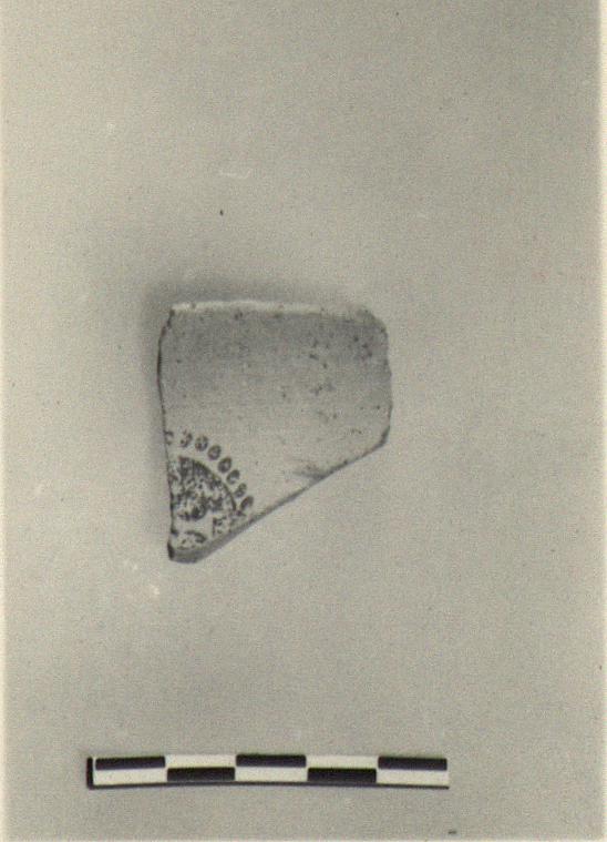 | Description: | From a cup or bowl with plain slightly outcurved rim. Part of design preserved in red on shoulder: a cross(?) reserved against a red disc; circle of dots around. Pinkish buff clay; buff surface. | |