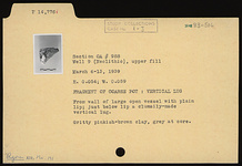 Description:   From the wall of a large open vessel with plain lip; just below lip a clumsily made vertical lug.