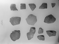 | Description: | From a deep bowl with plain lip; horizontally pierced lug just below rim. Gritty brown clay, gray at core; good red burnished slip inside and out, worn inside, where there are apparently traces of striped decoration. | |