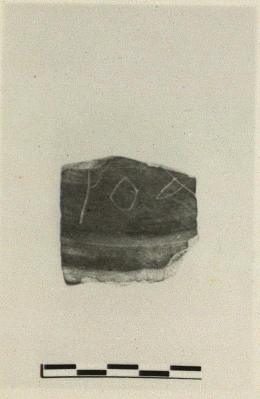 | Description: | From the shoulder of a micaceous ware jug. Incised outside: <graphic> | |