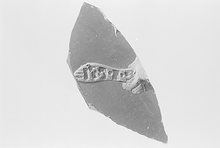 Description:   Small piece from center of floor, preserving most of foot-shaped stamp: <graphic>