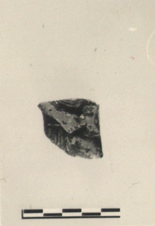 | Description: | Fragment of closed pot; on outside is preserved in fairly high relief, the lower torso and upper legs of an Amazon, holding in her right hand a double axe. The right thigh is left uncovered by the drapery. Gray clay; black glaze partly peeled on outside; inside smoothly finished; unglazed. | |