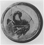 | Description: | Of the box, part of the upper wall missing, and chips from the base; of the lid, part of the top, and most of the sides missing. A small non-joining piece gives the lower edge of the lid. Restored in plaster. The bottom of the box is flat, projecting beyond the wall; a groove around the under surface; the high walls curve in at the top. The lid has a flat top and nearly vertical walls; the edge of the top projects slightly beyond the walls and is marked off by a groove. The box is plain, unglazed. On the top of the lid, a swan, right; the edge of the lid glazed. On the sides, inverted palmettes hanging from a glazed band. The bird's plumage is dotted with white; a broad wing-stripe is red between two incised lines. The hearts of the palmettes and some petals are red; a circle of white dots around each heart. | |