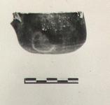 | Description: | High loop handle attached at rim, and chip of lip missing. Handle restored in plaster on model of others in tray. Plain rim, straight sides, slightly tapering toward top; flat bottom. Dull streaky black to brownish glaze, over all. | |