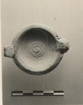 | Description: | Intact. A small open dish with attached vertical handles and rough flat bottom. The whole very roughly made. Pinkish-buff clay; unglazed. | |
