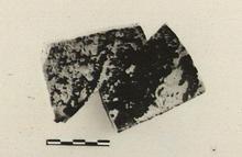 | Description: | From a semi-glazed krater; mended from two pieces, small fragment missing. Reddish-brown glaze band and thin wash outside; red to black glaze inside, much pitted. Incised inside (pitted when writing was done), more or less lengthwise to the pot: <graphic> | |