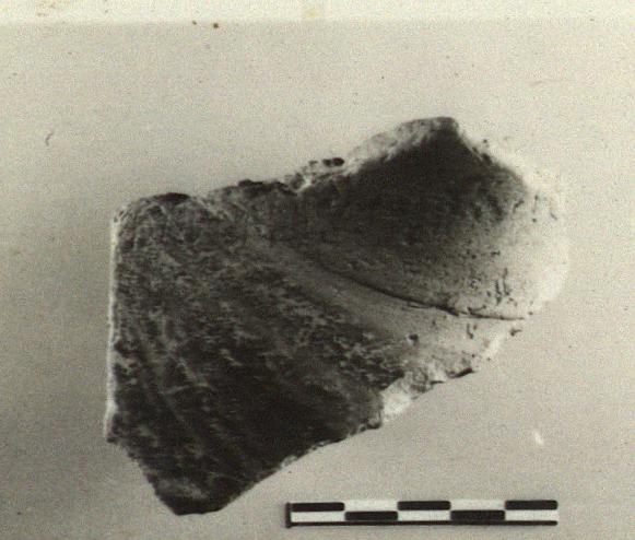 | Description: | From the shoulder and lower neck of a coarse pot with thin brownish glaze wash to neck. Incised outside, diagonally across junction of neck and shoulder: <graphic> Buff clay. | |