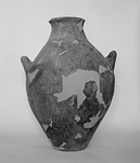 | Description: | A few fragments missing. Flat base, long ovoid body, small mouth with splayed and bevelled lip; two horizontal handles. Gritty pinkish clay; unglazed. | |