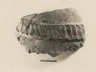 | Description: | Two joining fragments from wall of a pithos or other heavy pot. Wide horizontal ladder ornament in relief. Coarse gritty brown clay; unglazed | |