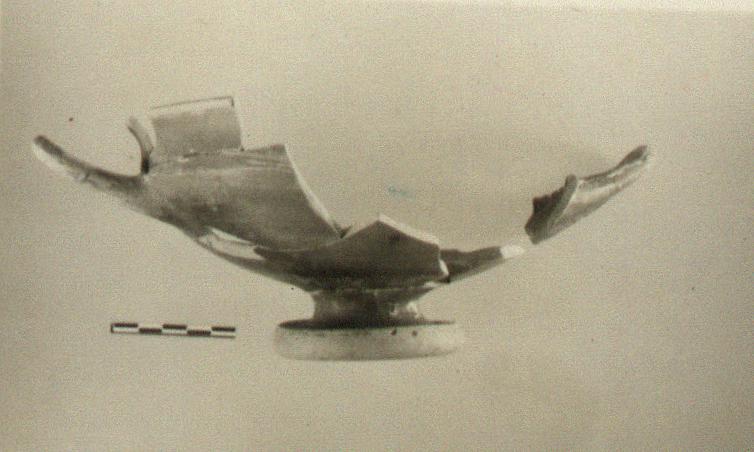 | Description: | Full profile preserved; much missing; one handle and several pieces of rim and wall do not join. Heavy ring base; short stem; deep bowl; offset concave lip. Glazed all over, red to black, considerably worn; reserved, lower edge of foot and resting surface and space at top of stem underneath. | |