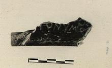 | Description: | Rim of semi-glazed krater; red glaze inside and on rounded, rather narrow rim. Incised inside, upside-down to the pot: <graphic> | |