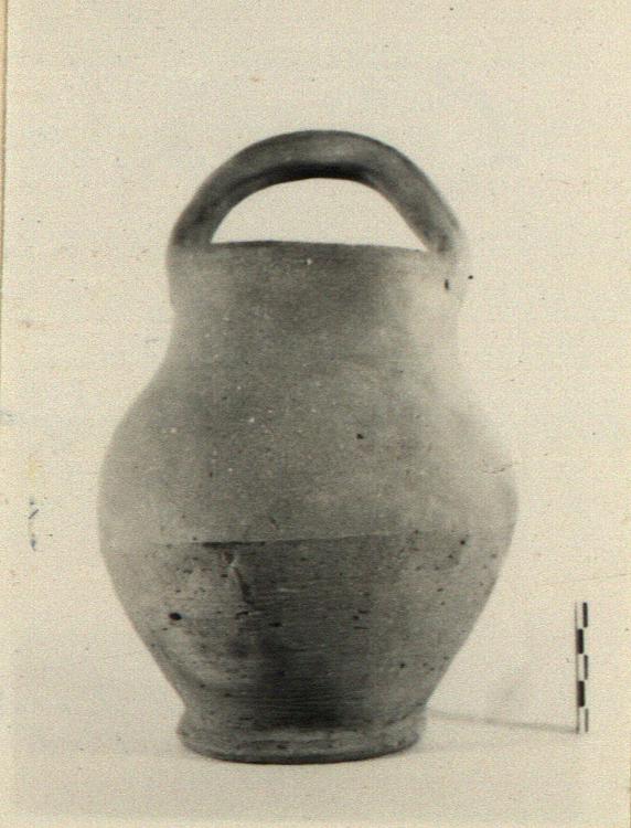 | Description: | Half the lip and neck missing. Similar to P 15650 (ΝΝ 1478) but with neck and rim forming continuous curve with body and mouth squeezed together from side to side. Lip slightly thickened. Gritty red clay, 2.5YR 5/6; dark gray at surface, ca. 5YR 5/2. ADDENDA P 15650: Ring foot and short plump body with straight lip. Low unridged handle. | |