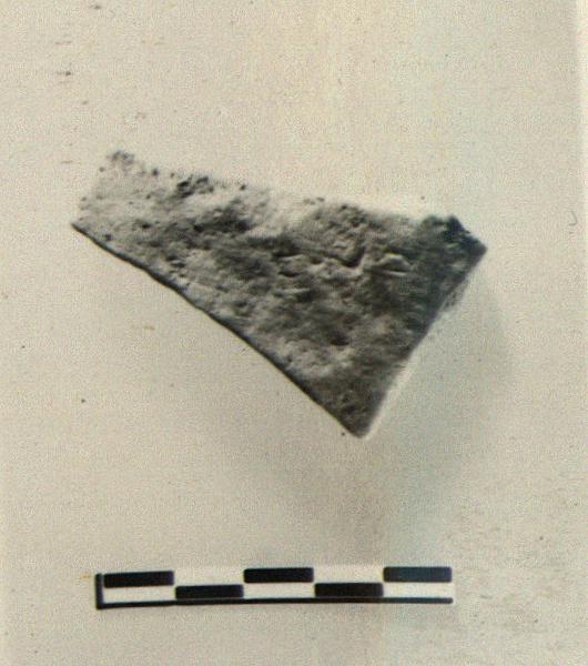 | Description: | From a coarse unglazed pot. Incised outside: <graphic> Micaceous brownish clay. | |