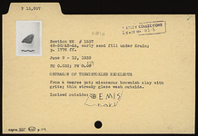 | Description: | From a coarse pot. Thin streaky glaze wash outside. Incised outside: <graphic> Micaceous brownish clay with grits. | |