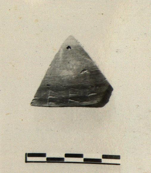 | Description: | From a coarse unglazed pot. Incised outside: <graphic> Red clay. | |