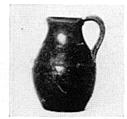 Fair black glaze inside and out; base not glazed. Band of purple around body below handle attachment, another band on lip and on upper handle attachment.