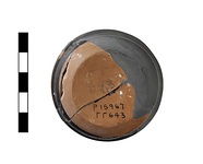 | Description: | About half missing; restored in plaster. Flat-bottomed cup with vertical walls very slightly convex; plain everted lip; no handles. Interior decorated with alternate glazed and reserved bands. On exterior, a reserved band between two glazed bands is decorated with large dots of glaze paint; similar dots on lip. | |