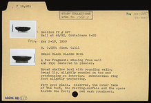 | Description: | A few fragments missing from wall and lip; restored in plaster. Broad shallow bowl with rounding walls; broad lip, slightly rounded on top and overhanging on interior. Substantial ring foot slightly projecting. Very good glaze. Reserved, the outer face of the foot, the resting surface and the space inside the foot; red wash prominent. | |