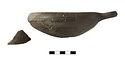 | Description: | Several joining fragments preserve about one-third of lip and bowl, and one handle. No trace of foot on preserved part. One small piece does not join. Broad rather deep bowl with flaring wall, curving over to form a plain drawn-in lip. One horizontal skyphos-like handle preserved, attached to lip. Bucchero(?) ware; coarse gray clay with bits; thin dull black glaze applied thinly and in streaks. | |