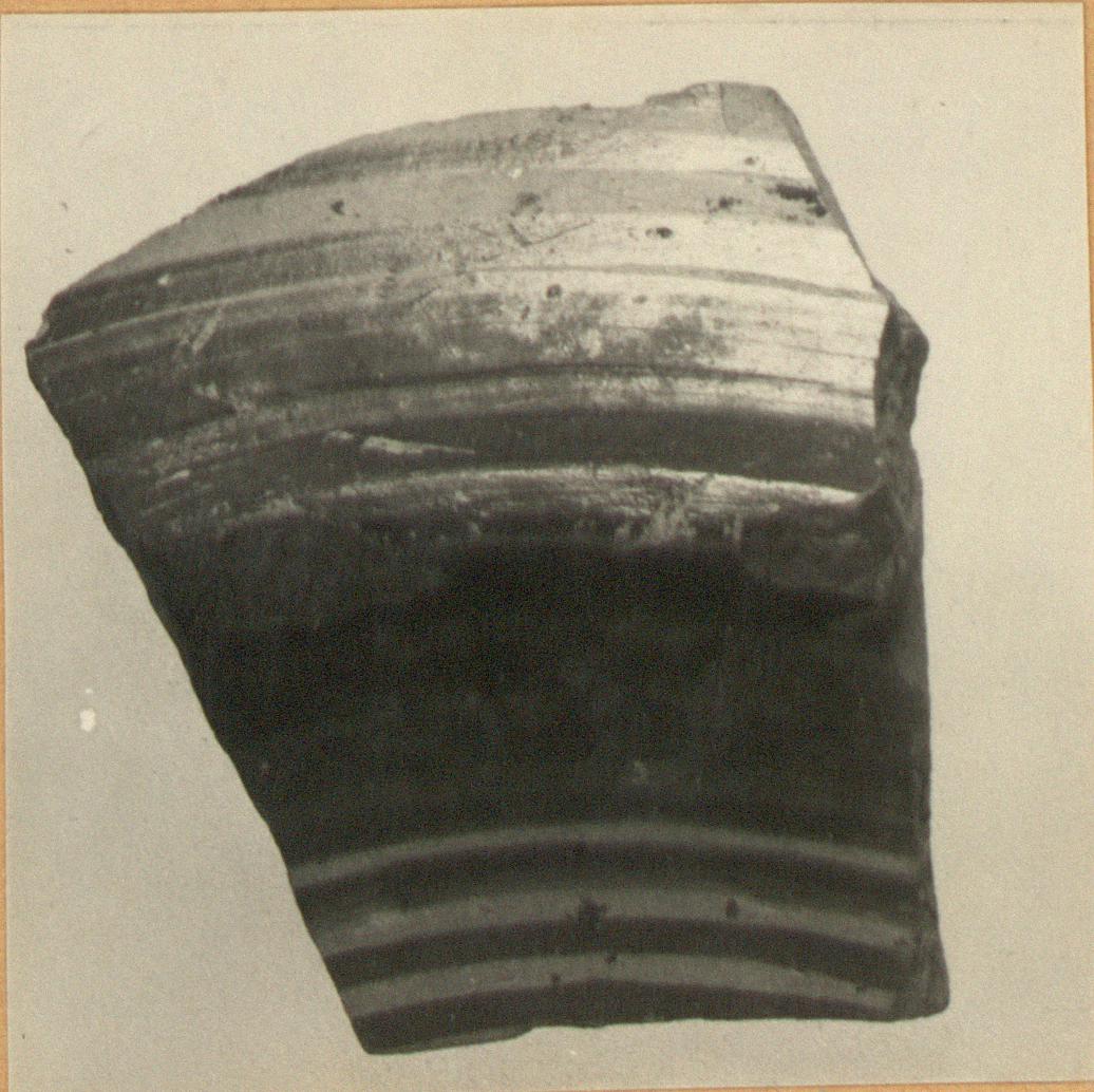 Description:   Fragment from base. Decorated with lines on reserved bands: simple geometric.
