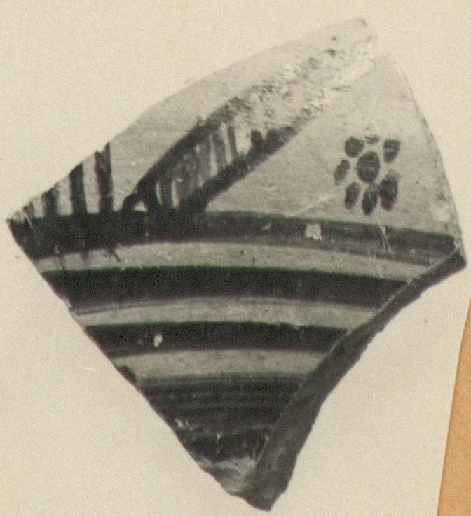 | Description: | Petal and two dot rosettes with lines below. Glazed with a reserved band. | |