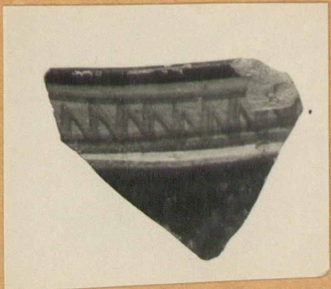 | Description: | Rim fragment. Reserved zone of zigzags around rim. Glazed inside. Protogeometric or simple Geometric. Cf. CVA Cambridge, 1, pl. I:10. | |