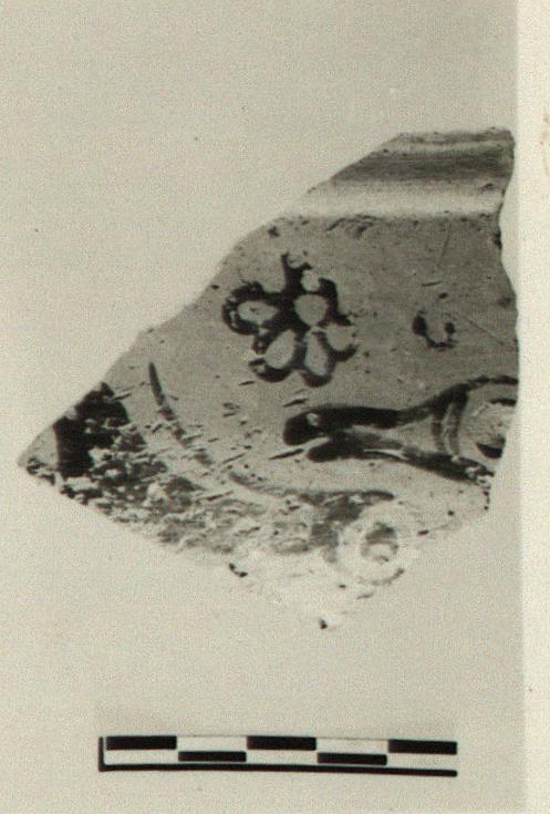 | Description: | A single fragment preserves part of rim and body of an open bowl. Exterior: parts of heads of two denizens of the animal(?) kingdom. Metallic black glaze on interior. | |