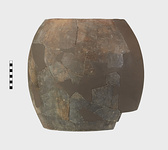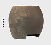 | Description: | Much missing, but the profile complete; restored in plaster. A large plain hollow stand with bulging walls finished off plain at top and bottom. Its shape recalls the deep braziers like P 16521 (ΓΓ 976), but the object is much larger and without bottom, rim or handles. A piece of the wall at the bottom is cut away to provide a fire-hole. Heavy coarse cooking ware fabric, much blackened from use. Cf. Agora XII, no. 2023. | |