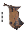 Brown wash on hair and tympanum. Glaze rather dull and streaky. A reserved groove around the lip, and another at the base of the wall.