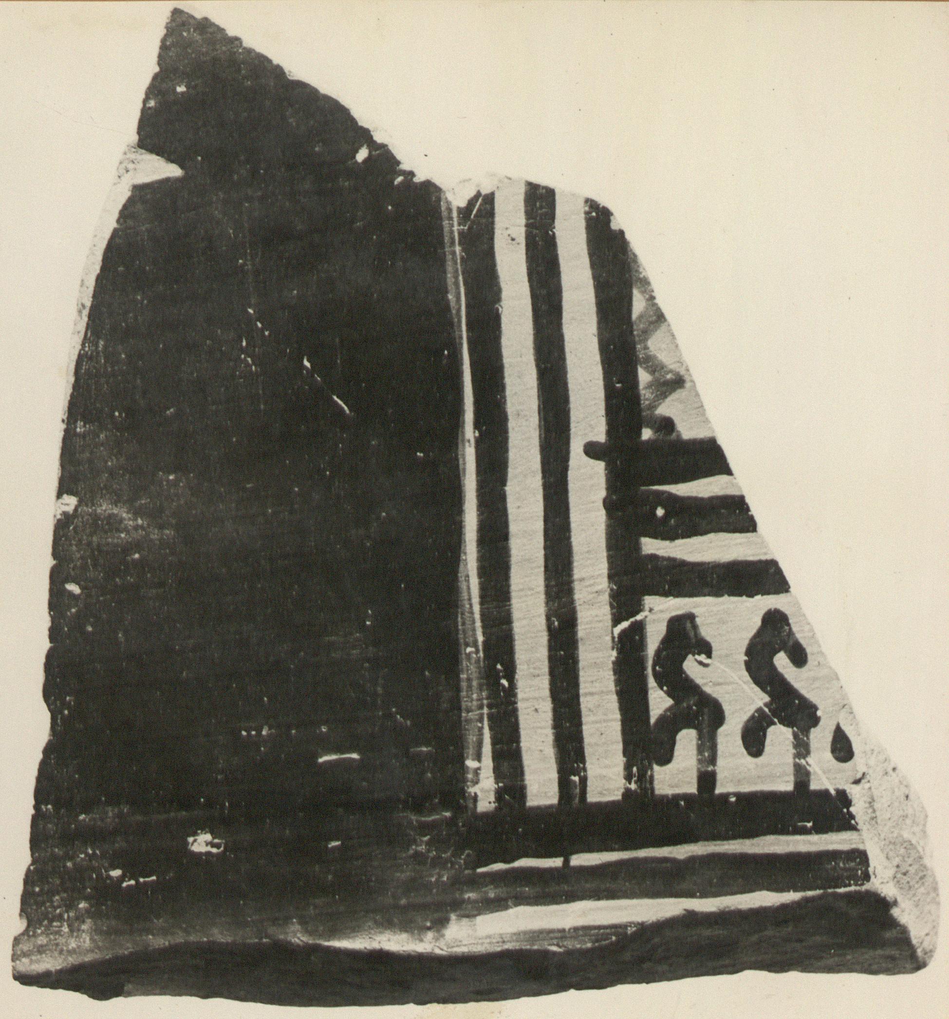 | Description: | Black body and reserved panel with zigzags and birds. Fairly careless ripe Dipylon style. | |