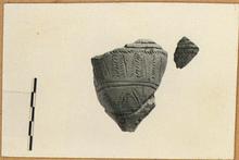 | Description: | From lower part of pyxis. Incised decoration: herringbone, zigzags and circles with serpentine dots. Handmade polished ware. Cf. P 1669 for clay. Cf. ArchEph (1898), pl. 2, no. 15. ADDENDA Originally two fragments were recorded as belonging to this pot. It was decided later that fragment b) did not belong to P 1673 and it was catalogued separately as P 1673 BIS, joining P 27650. | |
