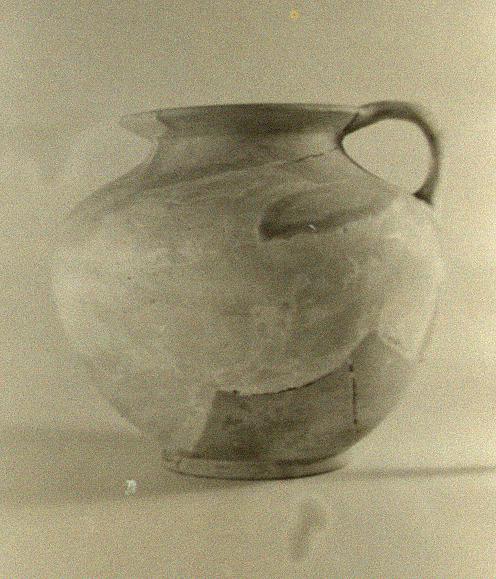 | Description: | Much of rim and and body missing; restored in plaster. Round mouth with flaring lip. Round squat body. Ring foot. Clay gray at core, buff at surface. Traces of rust-colored slip. | |