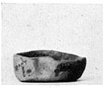 | Description: | Intact. A handmade open, handleless cup, sides slightly pinched in at two points. Bottom flat. Roughly decorated inside and out with crosses, strokes and dots in dull reddish-brown paint. Light brown clay. | |