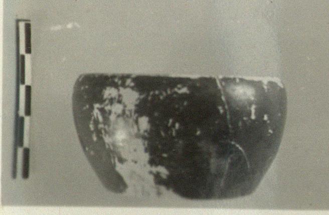 | Description: | Complete, save minor chips. Convex outer wall. Inset flat bottom. Black glaze all over. | |