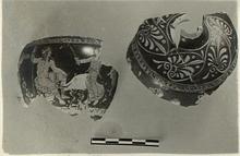 Palmette pattern on shoulder and border of egg pattern at its base. Ground line of egg pattern.