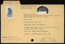 Description:   Fragment preserving about half of floor and foot of a black glazed stamped bolsal. Ring foot. Stamp: linked palmettes.