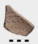 Description:   Rim fragment. On rim: reverse spirals with guilloche below. On body: leaf pattern.