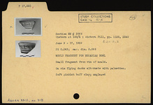 | Description: | Small fragment from rim of mould. On rim flying ducks alternate with palmettes. Soft pinkish-buff clay; unglazed. | |