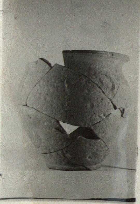 | Description: | Mended from many fragments; more than half of body and rim, and both handles except for base of attachments for one, missing. Ring foot; deep body curving in to widish neck; projecting rim; rolled horizontal handles at shoulder. Micaceous pinkish-buff clay; surface much pitted and peeled, traces of red glaze on neck. 2.5YR 6/6 | |