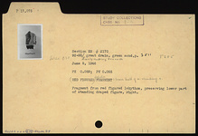 | Description: | Fragment from red figured lekythos, preserving lower part of standing draped figure, right. | |